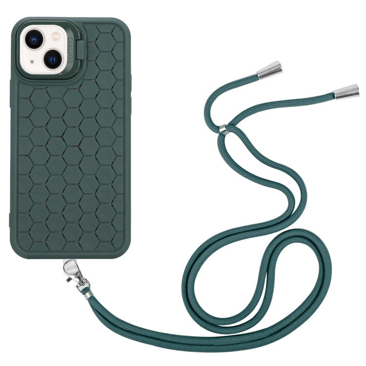 For iPhone 14 Magsafe Phone Case with Honeycomb Radiant Lens Holder with Lanyard (Green)
