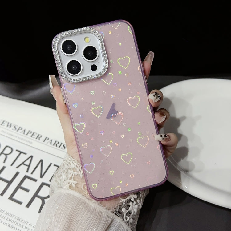 Funda para iPhone 14 Love Pattern Diamond Lens Frame Imd Acrílico (Púrpura)