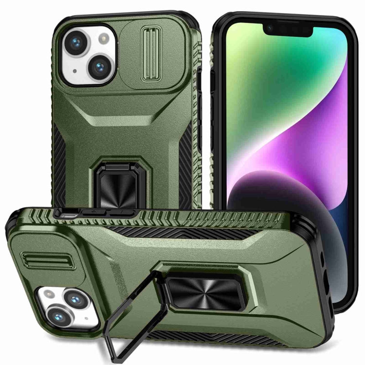 Funda para Teléfono iPhone 14 con Soporte Deslizante para Escudo de Levas (Rosa + Gris Verde)