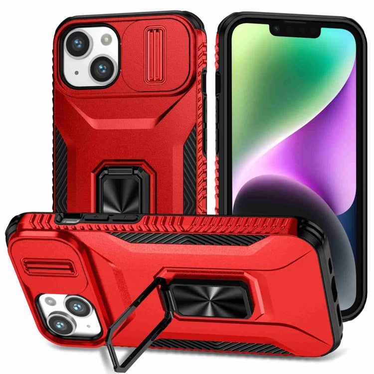Funda para teléfono iPhone 14 con soporte deslizante para levas (Rojo)