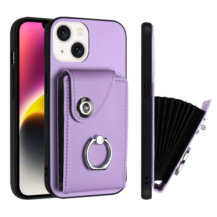 Funda para Teléfono iPhone 14 con Soporte para Anillo y Bolsa para Tarjeta de Órgano (Púrpura)
