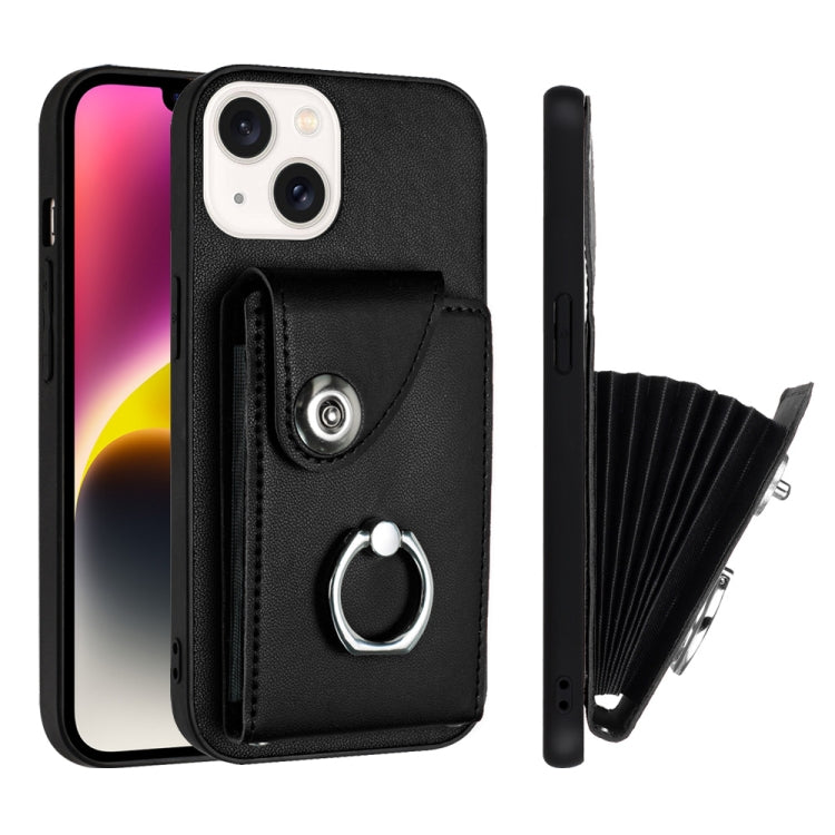 Funda para Teléfono iPhone 14 con Soporte para Anillo y Bolsa para Tarjeta de Órgano (Negro)