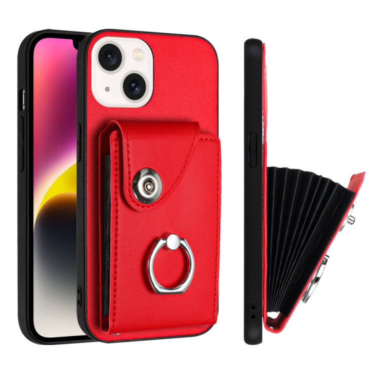 Funda para Teléfono iPhone 14 con Soporte para Anillo y Bolsa para Tarjeta de Órgano (Rojo)