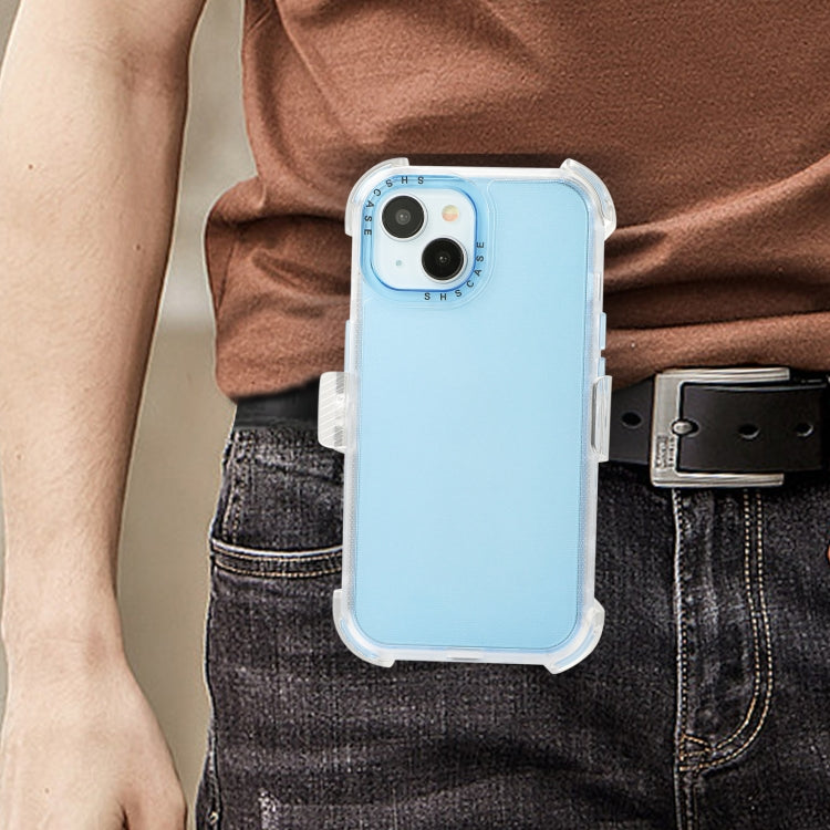 Estuche para Teléfono iPhone 14 Frosted PC + TPU con Clip Trasero (Azul Transparente)