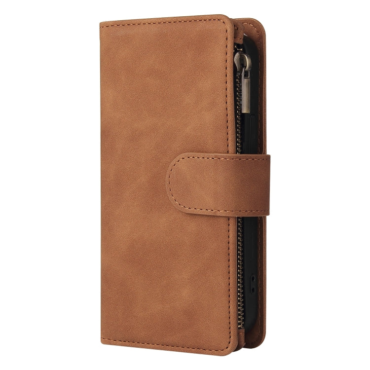 Funda para iPhone 14 Monedero de Cuero con 9 Ranuras para Tarjetas y Cremallera (Marrón)