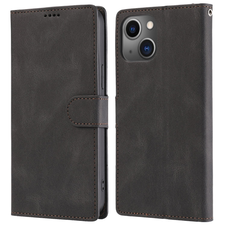 Funda para iPhone 14 Fantasy Classic Skin-Feel de Cuero con Textura de Piel de Becerro (Negro)