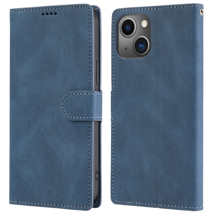 Funda de Cuero Fantasy Classic para iPhone 14 con Textura de Piel de Becerro (Azul)