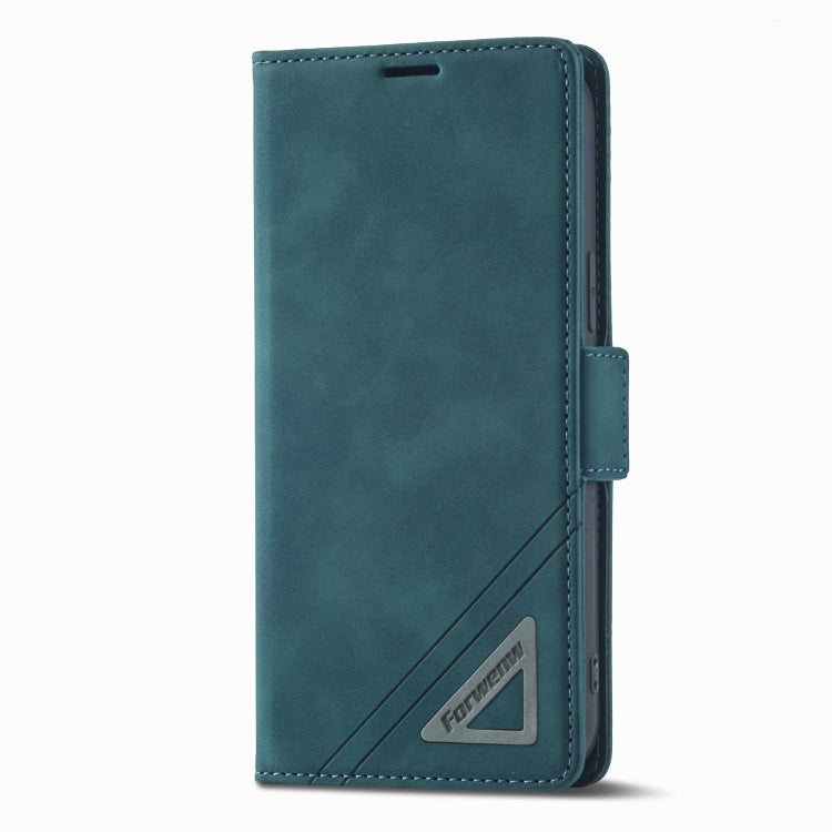 Funda de Cuero FoRWenw para iPhone 14 con Hebilla de Doble Cara (Cian Oscuro)