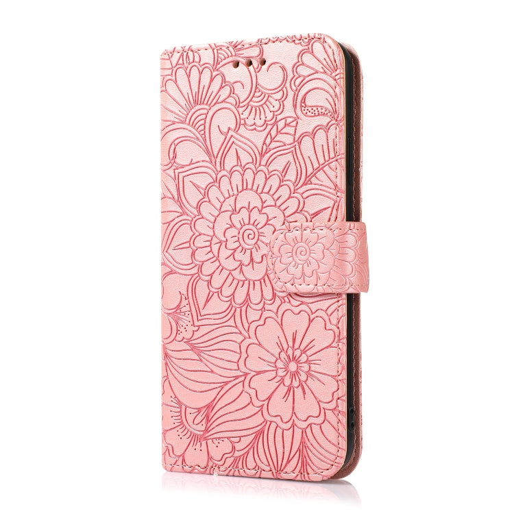 Funda de Cuero Horizontal con Girasol En Relieve para iPhone 14 Skin Feel (Oro Rosa)