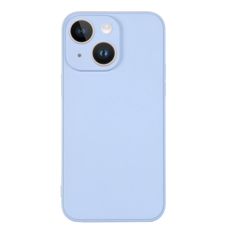 Funda de Silicona para iPhone 14 con Correa para la Muñeca (Azul Claro)