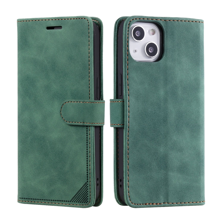 For iPhone 14 Skin Feel Horizontal Flip Leather Phone Case with Anti-Theft Brush (Green)