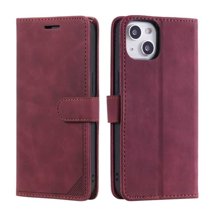 For iPhone 14 Skin Feel Horizontal Flip Leather Phone Case with Anti-Theft Brush (Red)