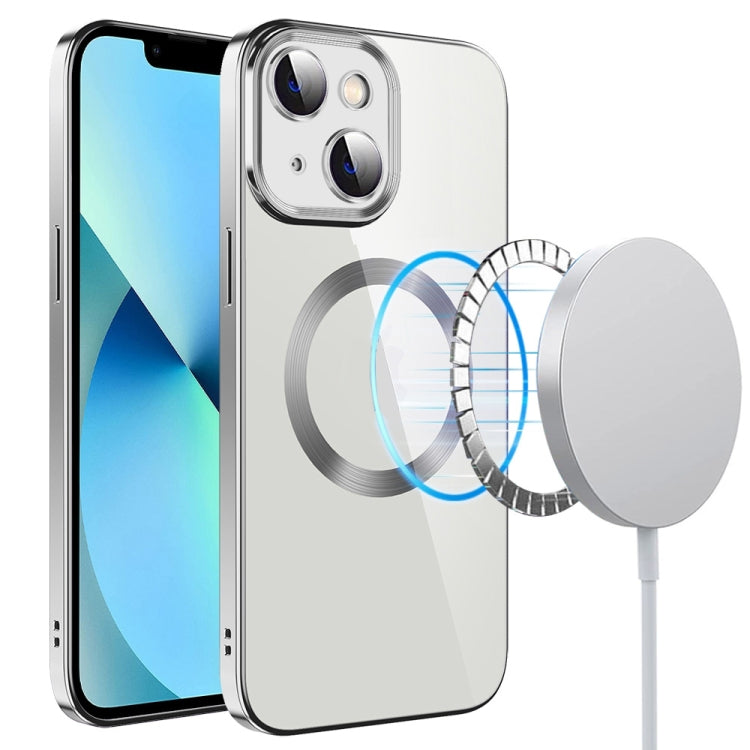 Funda para Teléfono iPhone 14 Galvanoplastia Magsafe TPU con Película de Lente (Plata)