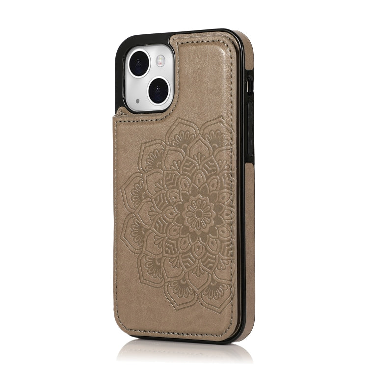 Funda Cartera para iPhone 14 Doble Hebilla Mandala Cuero Contraportada (Marrón)