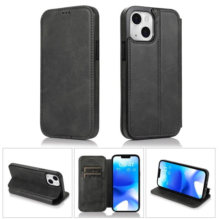 Funda para Teléfono iPhone 14 Cierre Magnético Fuerte PU + TPU Cuero (Negro)