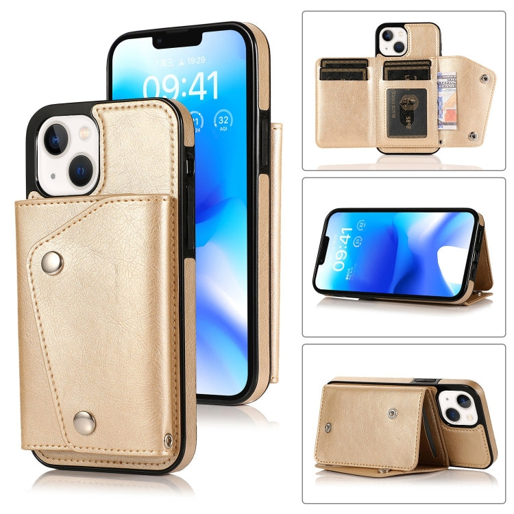 Funda para iPhone 14 PU + TPU con Ranuras para Tarjetas y Cuero (Oro)