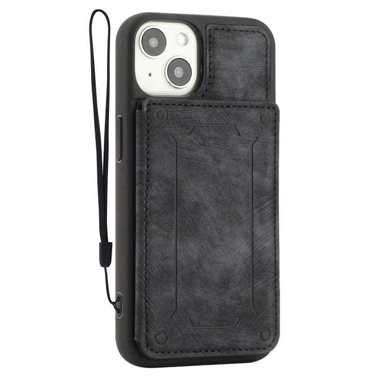Funda para iPhone 14 Ring Holder con Ranura RFID y Cordón Largo (Negro)