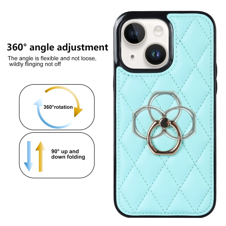Funda para teléfono iPhone 14 Rhombic PU Cuero con soporte para anillo (Verde)