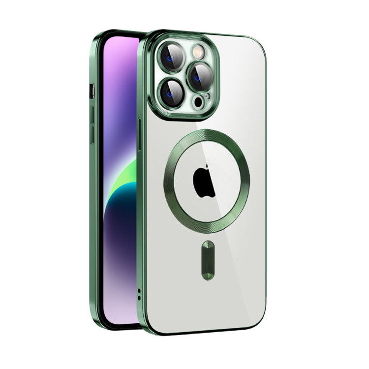 Funda para telĂ©fono iPhone 14 Cd Textura Plating TPU Magsafe con PelĂcula de Lente (Verde Oscuro)