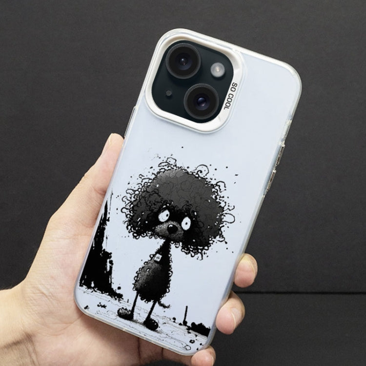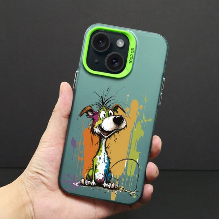 Funda para iPhone 15 Plus Color Ink Frosted PC y Estuche TPU Perro Tonto