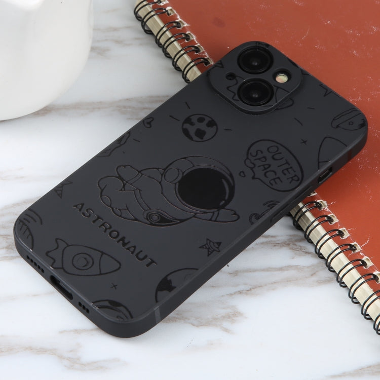 For iPhone 15 Plus Astronaut Pattern Silicone Straight Edge Phone Case (Lovely Astronaut-Black)