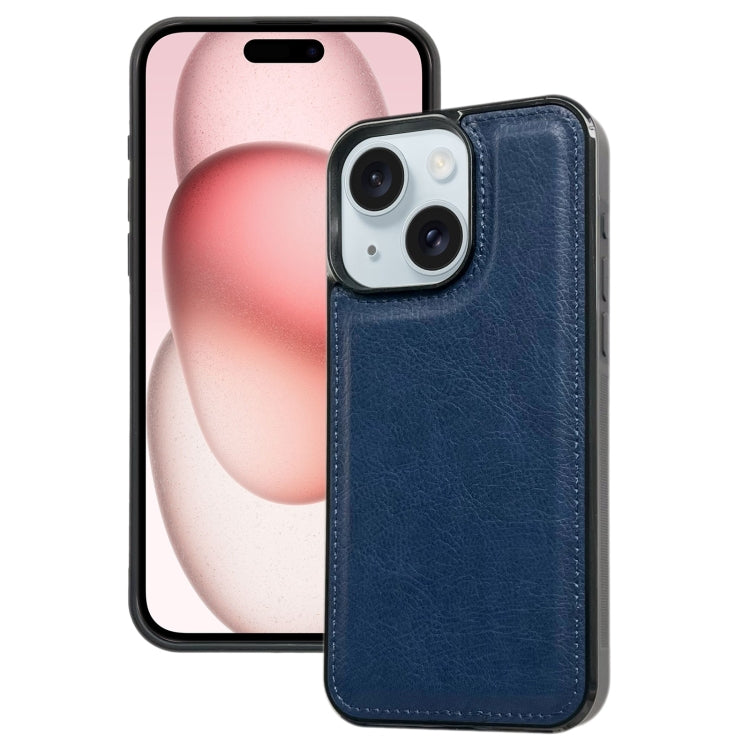 For iPhone 15 Plus Phone Case with Cowhide Texture Back Cover (Royal Blue)