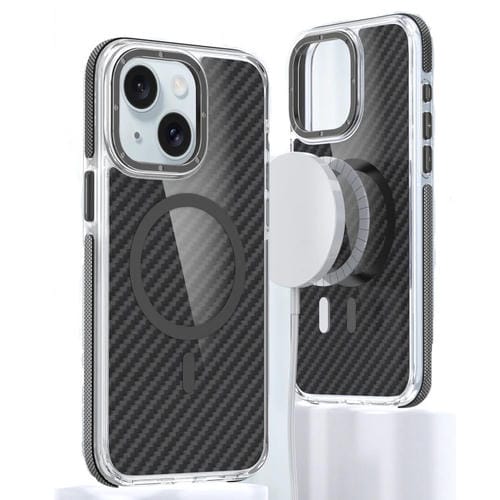 For iPhone 15 Plus Two-color Carbon Fiber Magsafe Phone Case (Black)