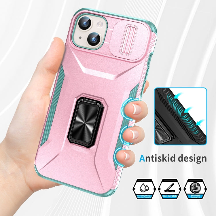Estuche para Teléfono iPhone 15 Plus con Soporte Deslizante para Levas (Rosa + Gris Verde)