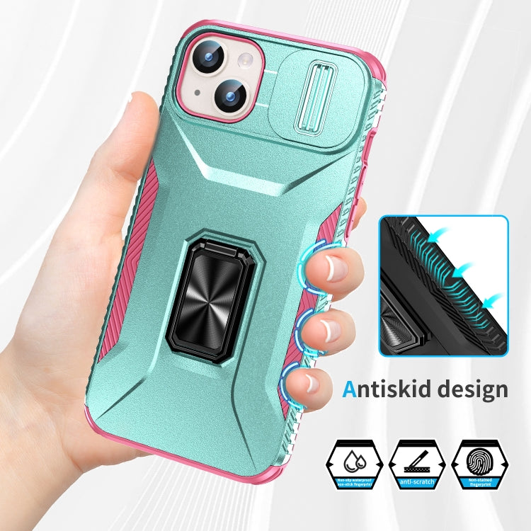 Estuche para teléfono iPhone 15 Plus con soporte deslizante para levas (Rosa + Rojo Rosa)