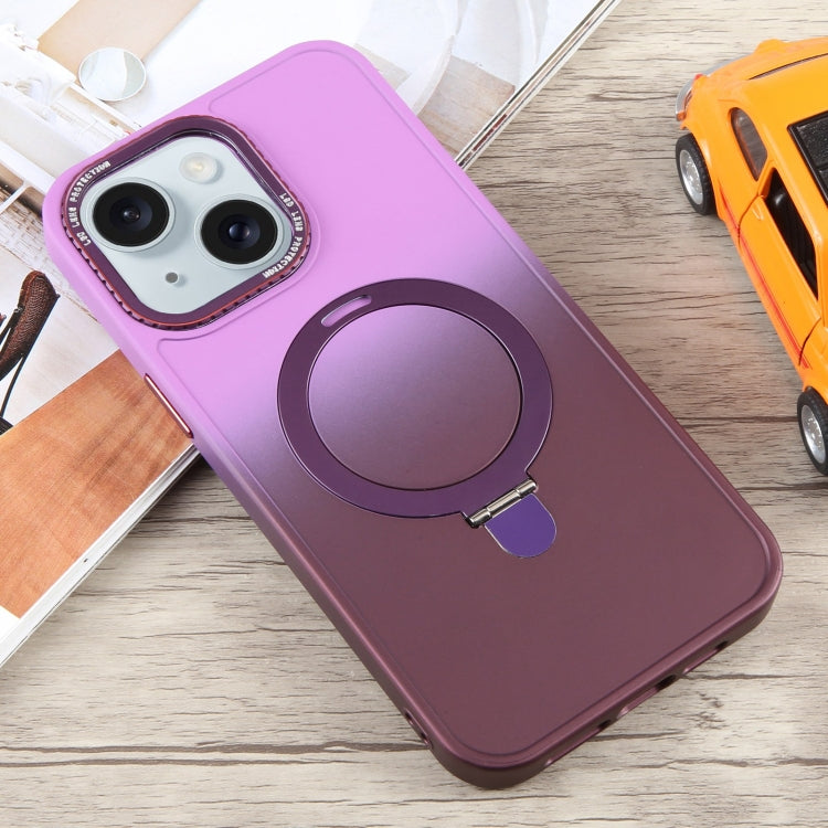 Funda para Teléfono iPhone 15 Plus con Soporte Magsafe y Silicona Líquida Gradiente (Rosa Púrpura)