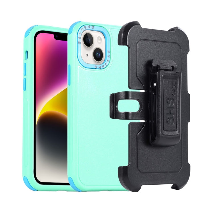 Funda para Teléfono iPhone 15 Plus 3 En 1 PC y TPU con Funda Deslizante (Azul + Verde)