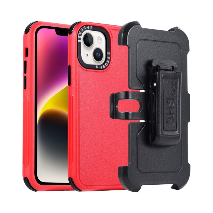 Funda para teléfono iPhone 15 Plus 3 en 1 PC con funda deslizante de TPU (Rojo + Negro)
