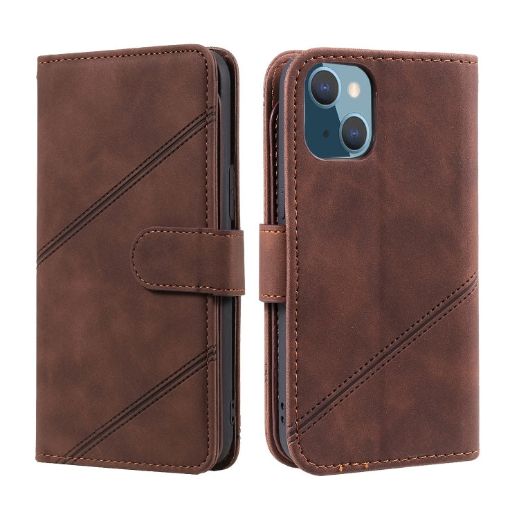 For iPhone 15 Plus Skin Feel Leather Phone Case with Multi-Card Wallet (Brown)