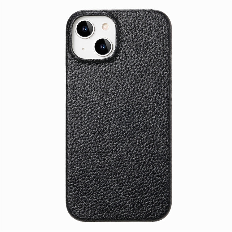 For iPhone 15 Plus Phone Case with Litchi Oil Edge Leather Back (Black)