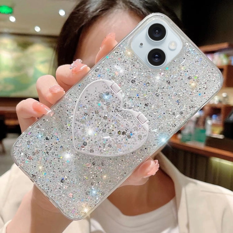Estuche para Teléfono iPhone 15 Plus TPU Epoxi Soporte Redondo Lentejuelas Estrelladas (Plateado)
