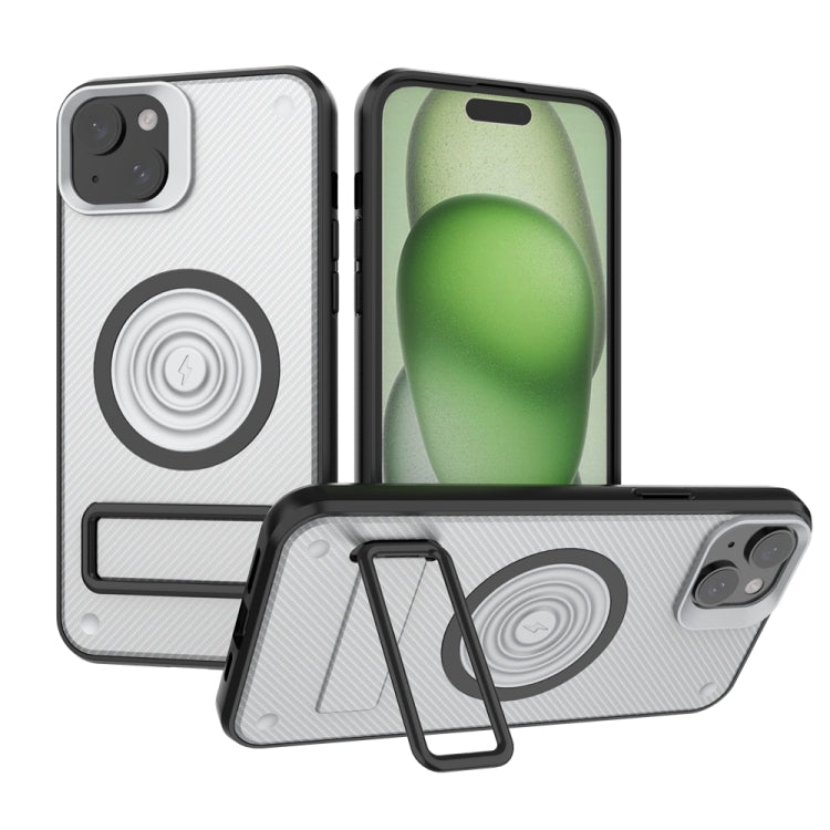 Funda para Teléfono iPhone 15 Plus PC + TPU Textura Fibra de Carbono Soporte de Metal (Negro)