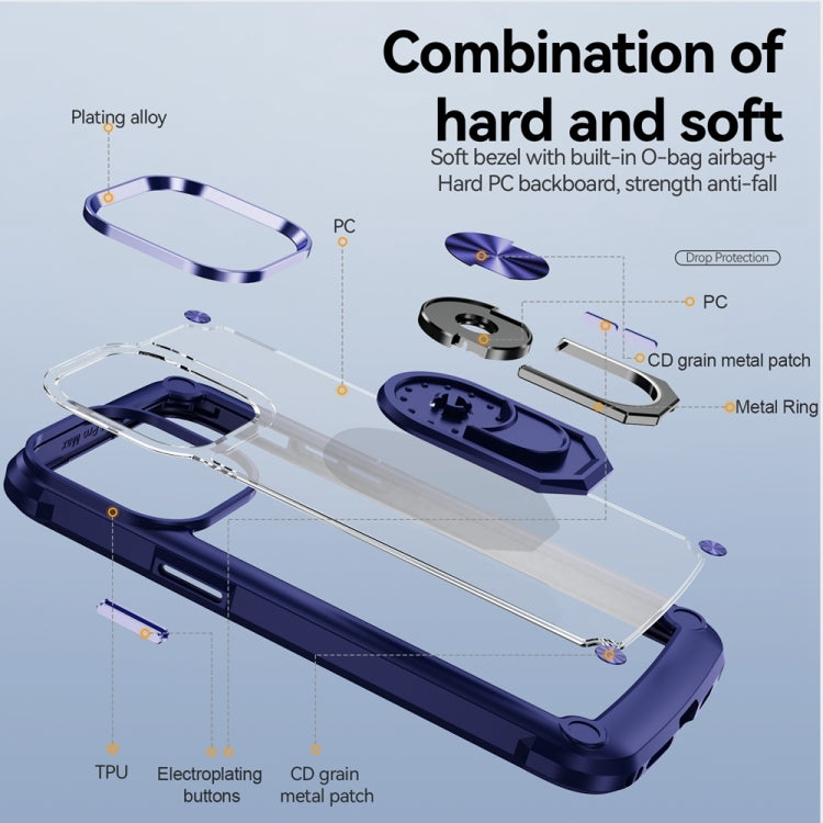 Estuche para Teléfono iPhone 15 Pro Max TPU + PC con Protección de Lente y Soporte para Anillo (Azul)