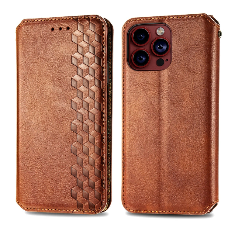 Funda para Teléfono iPhone 15 Pro Max Cubic Grid Cuero Magnético Prensado (Marrón)