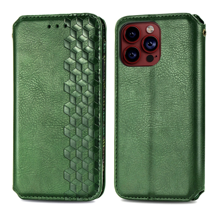 Funda para Teléfono iPhone 15 Pro Max Cubic Grid Cuero Magnético Prensado (Verde)