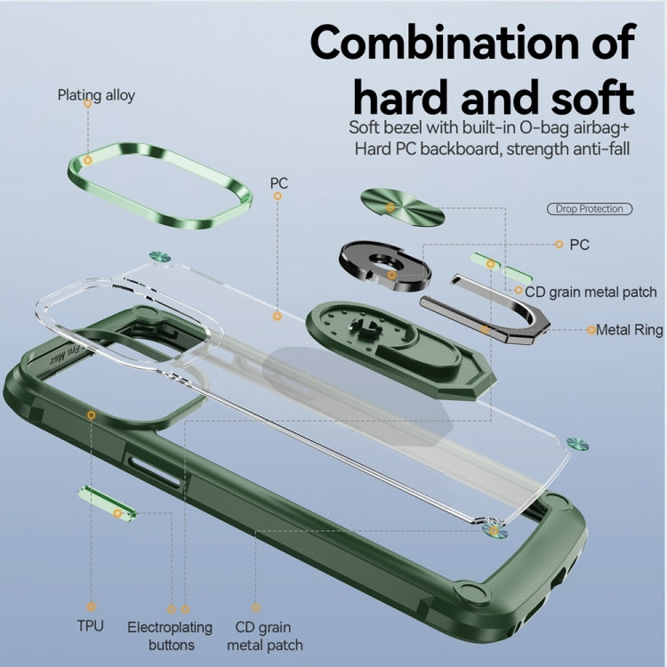 For iPhone 15 Pro TPU+PC Phone Case with Lens Protection with Ring Holder (Green)
