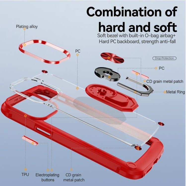 For iPhone 15 Pro TPU+PC Phone Case with Lens Protection with Ring Holder (Red)