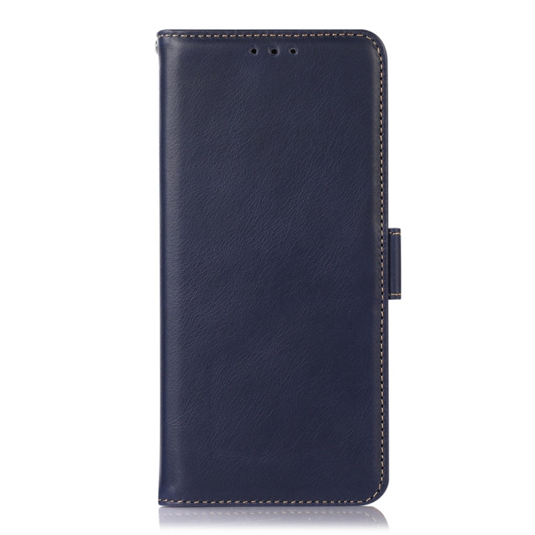 For iPhone 15 Pro KHAZNEH Two-color cowhide texture flip leather case (blue)