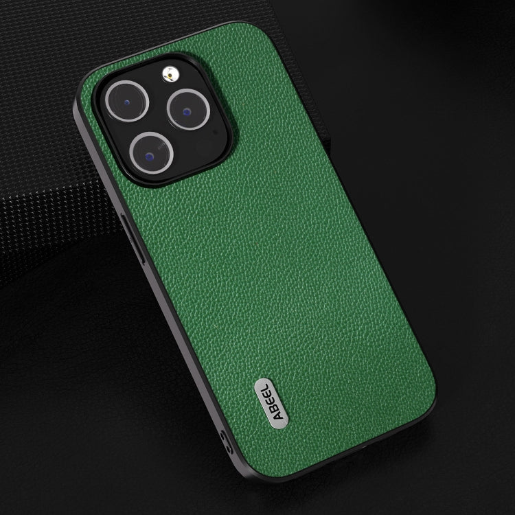 For iPhone 15 Pro ABEEL Genuine Leather Silky Smooth Black Edge Phone Case (Green)