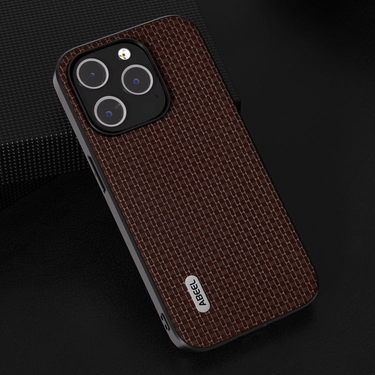 For iPhone 15 Pro ABEEL Genuine Leather Silky Smooth Black Edge Phone Case (Coffee)