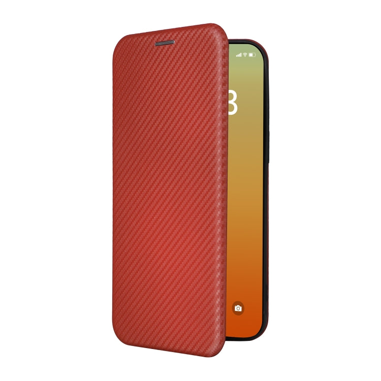 Funda para iPhone 15 Pro Cuero con Tapa Textura de Fibra de Carbono (Marrón)