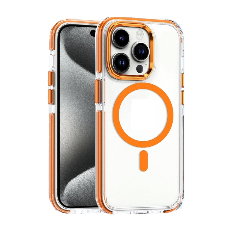 Estuche para Teléfono iPhone 15 Pro PC Transparente Híbrido Magsafe TPU Doble Color (Naranja)