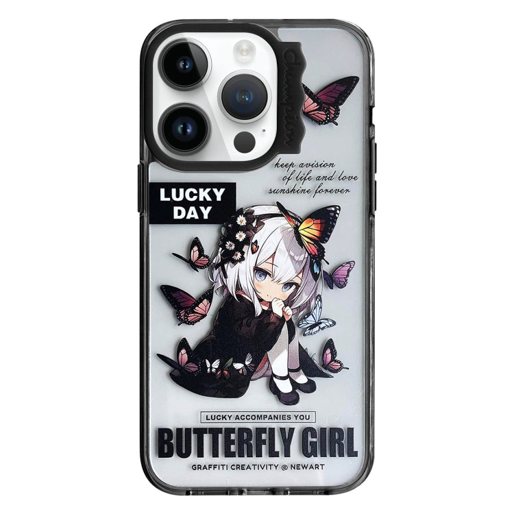 Estuche para Teléfono iPhone 15 Pro Patrón Creativo Círculo Ondulado (Mariposa y Florista)