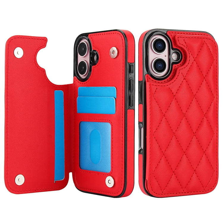 Funda para Teléfono iPhone 16 Plus Cuero Pu Rombal Doble Hebilla (Rojo)