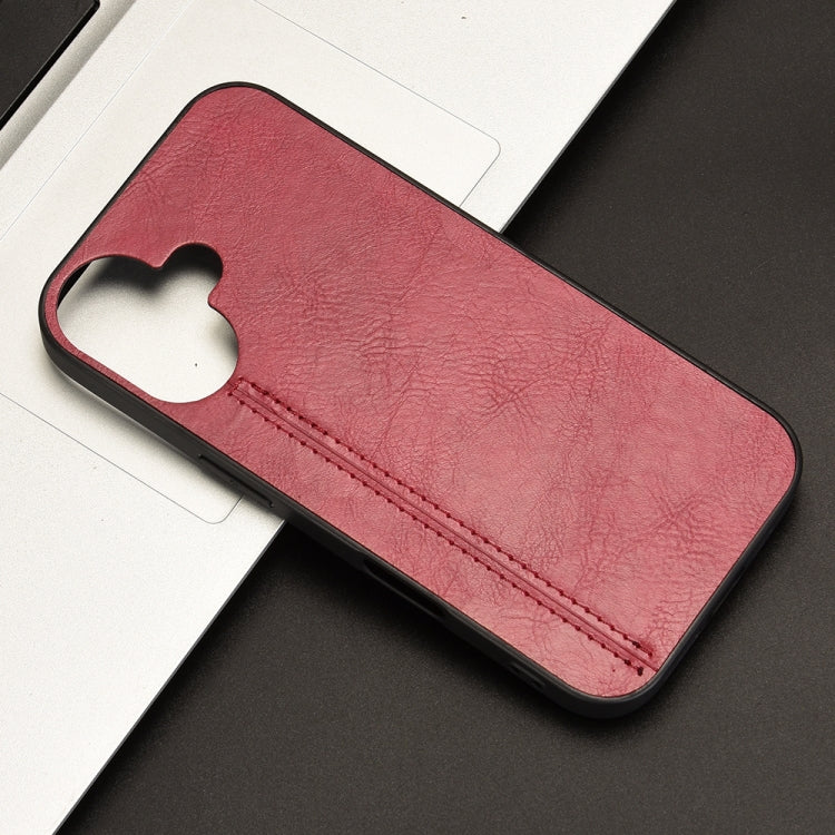 Funda para Teléfono iPhone 16 Plus Patrón de Vaca con Tarjeta de Costura (Roja)