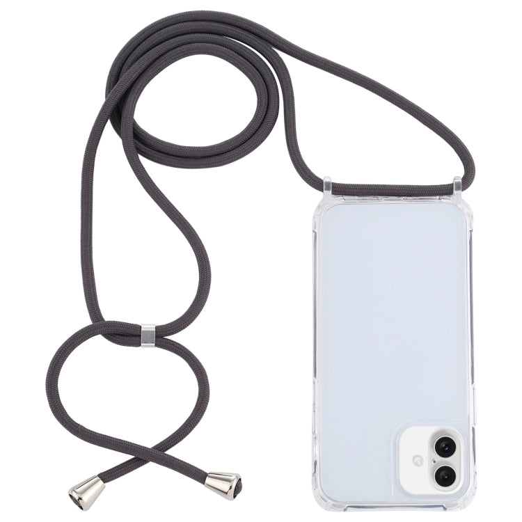Funda Protectora para iPhone 16 Plus Acrílico Transparente Prueba de Golpes con Cordón (Gris Oscuro)